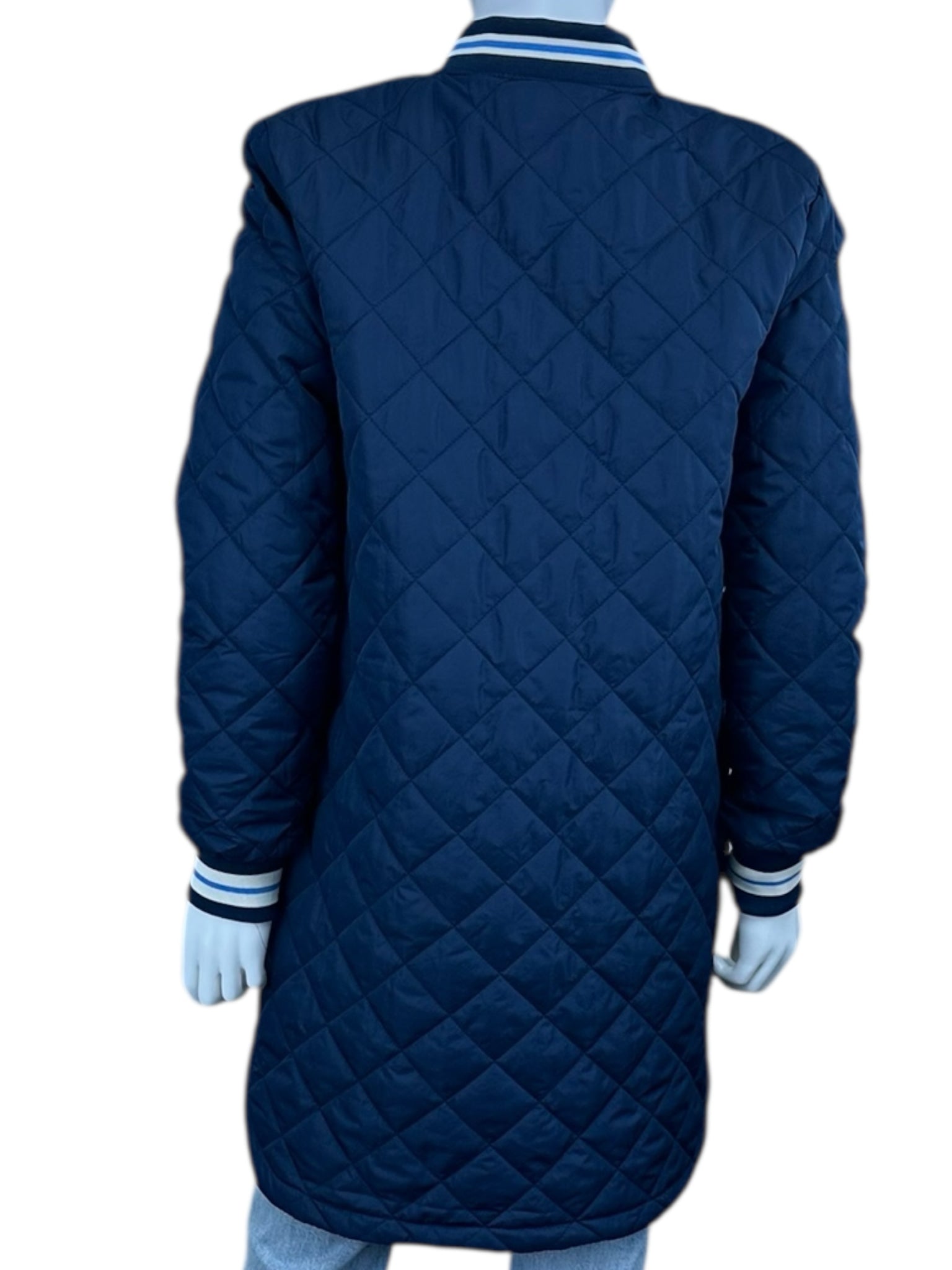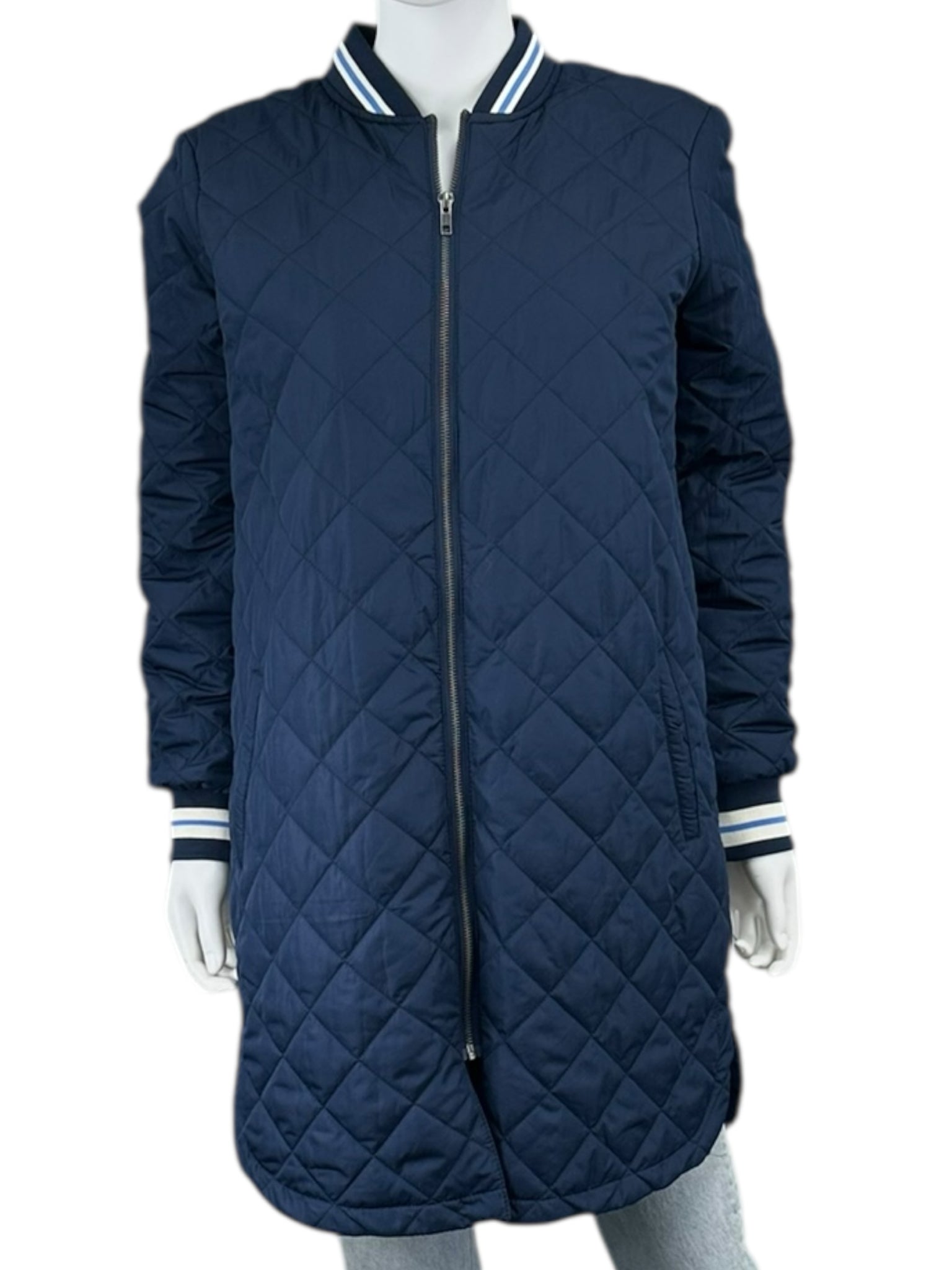 New with tags! Navy blue quilted Fenya jacket with long sleeves, front pockets and a full front zipper closure.