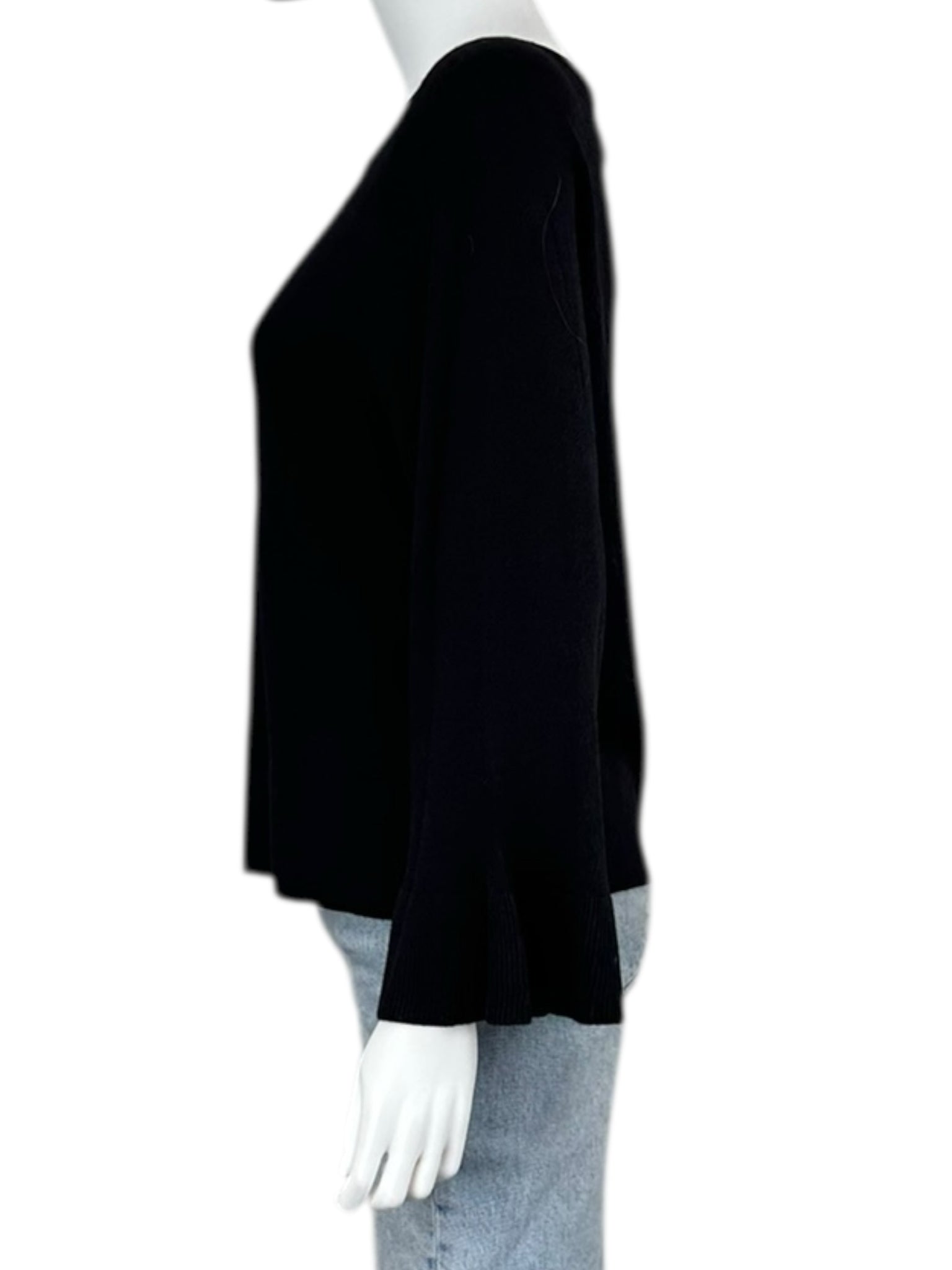 New with tags! Black thin knit pullover sweater with long ruffle cuff sleeves.