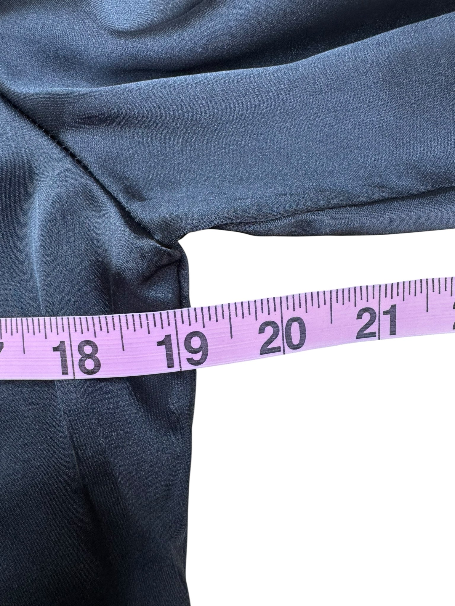 New from local boutique! Super silky black satin ASA style button-down top with collared neckline and long button cuff closure sleeves.