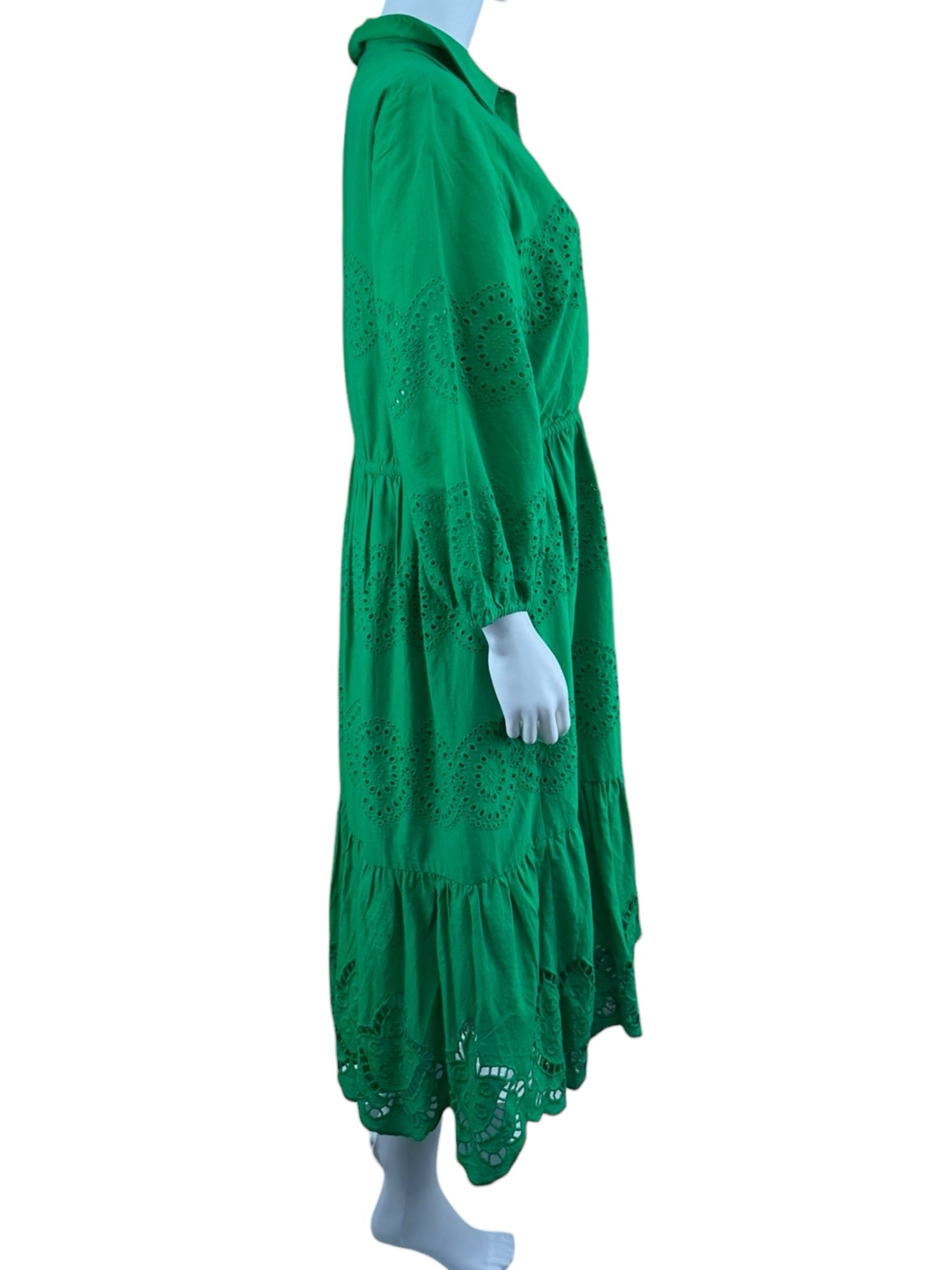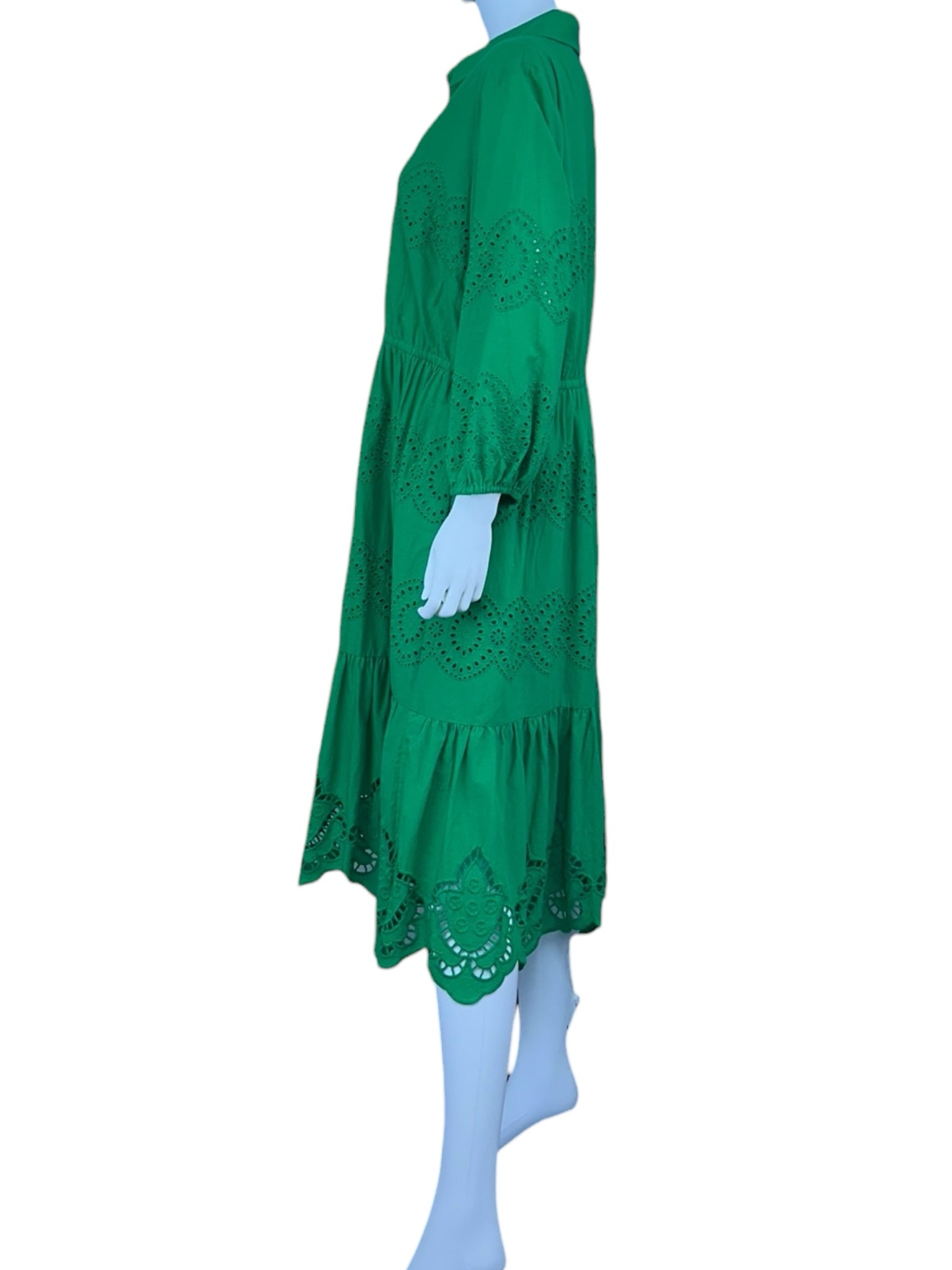 green eyelet midi ls collared bd top w tie belt drawstring