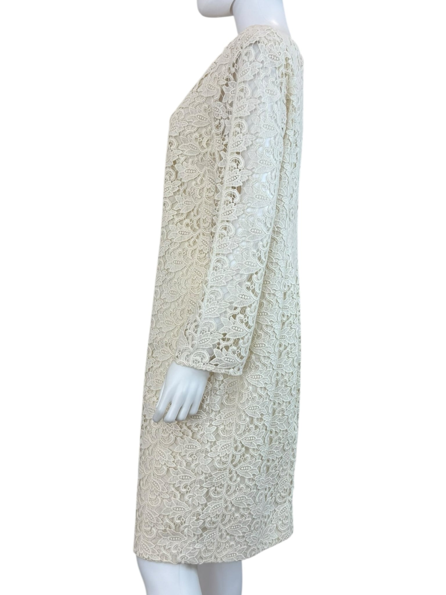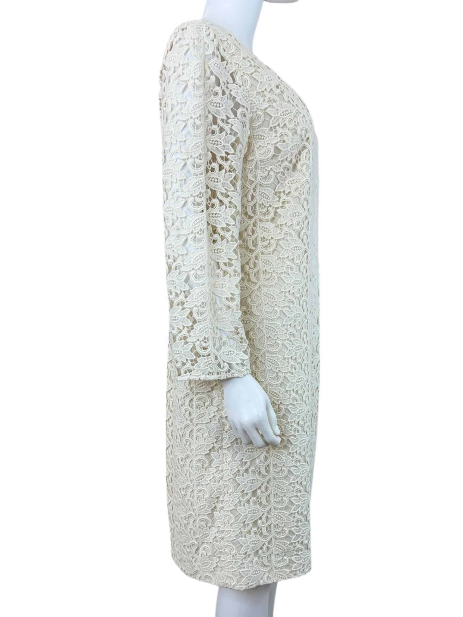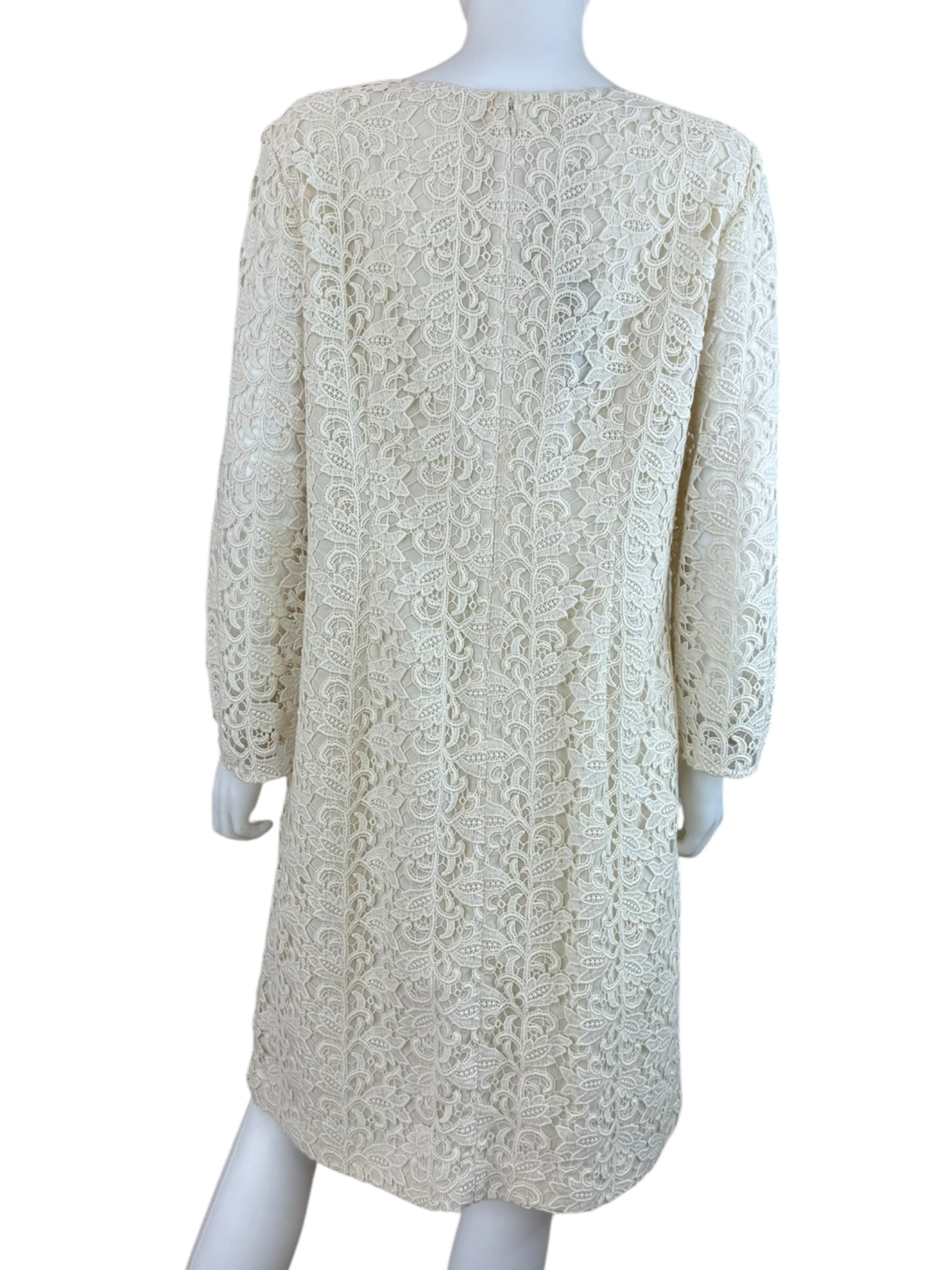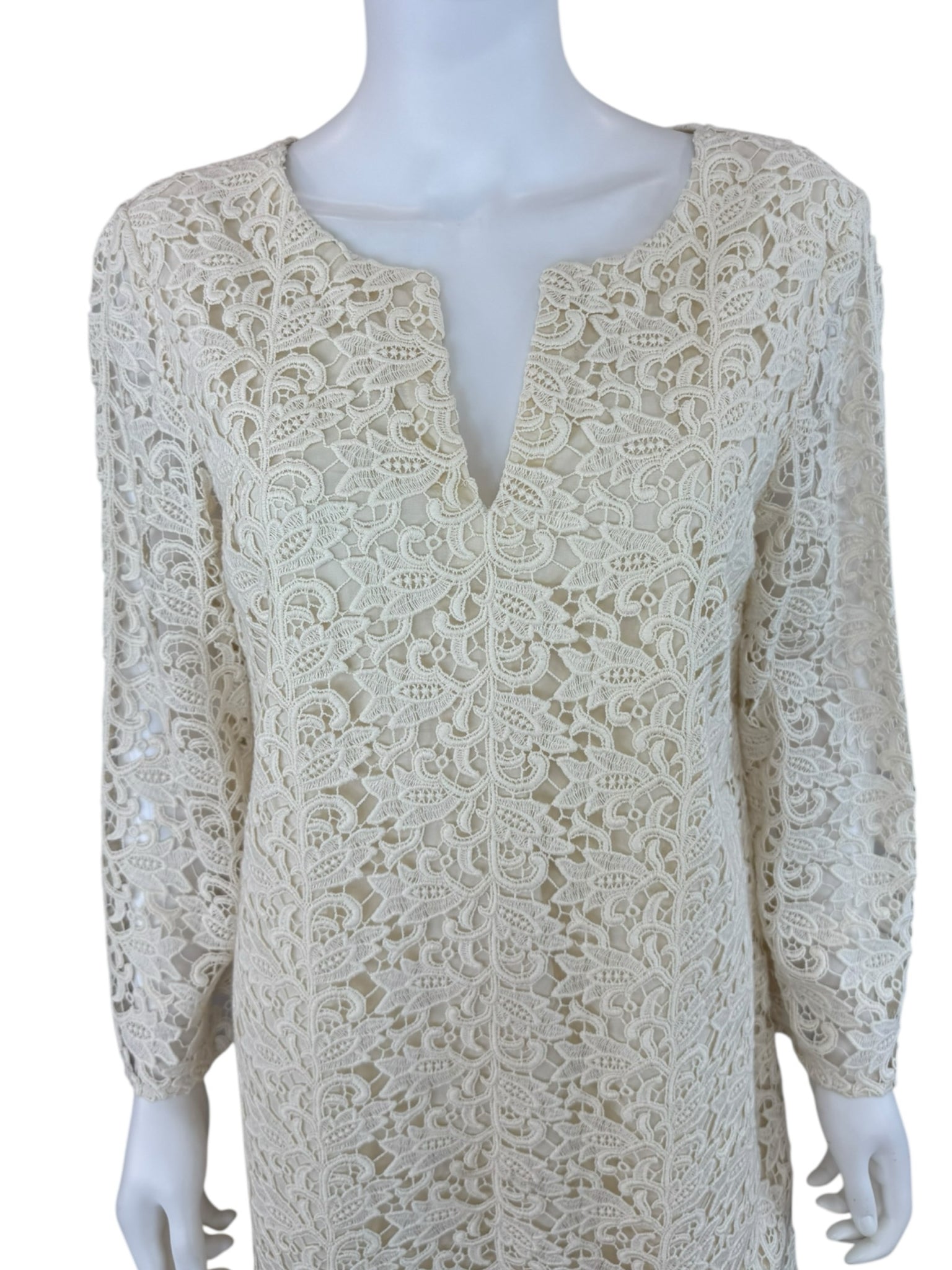 New with tags! Cream, lace midi dress with 3/4 length sleeves and a v-neck neckline.