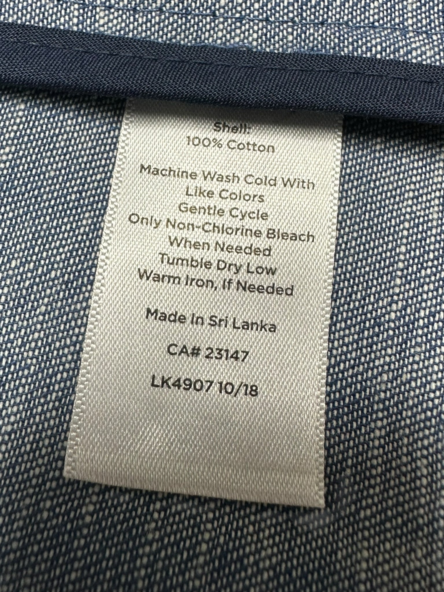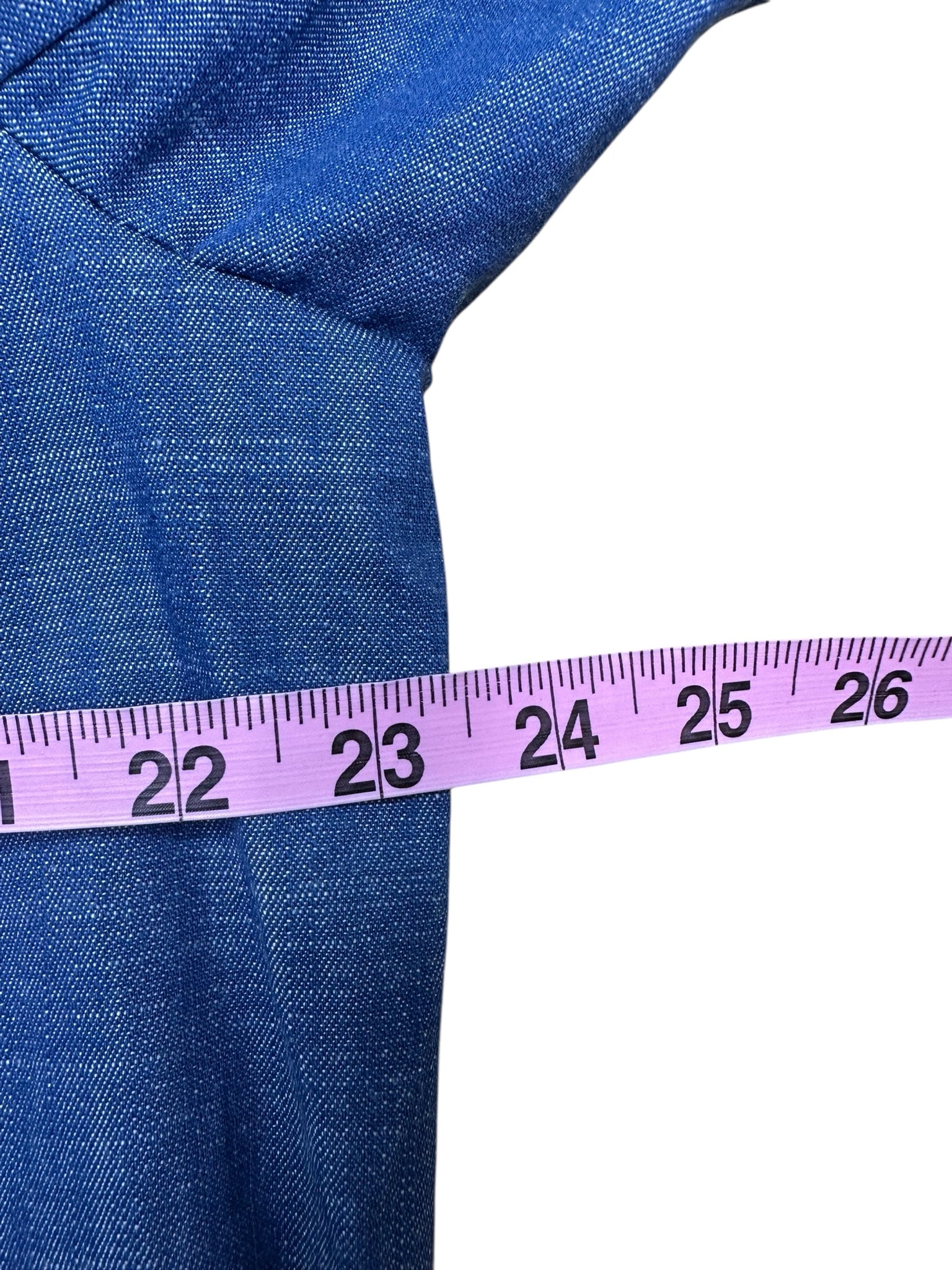 100% cotton blue collared ls full bd tie belt chest/ side pckts