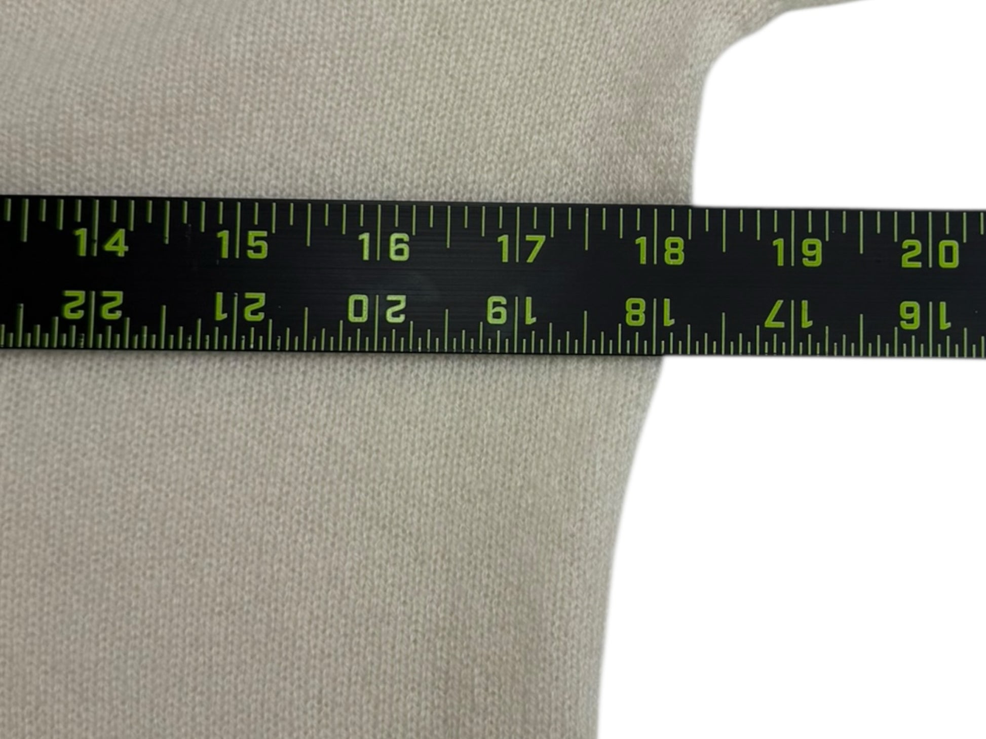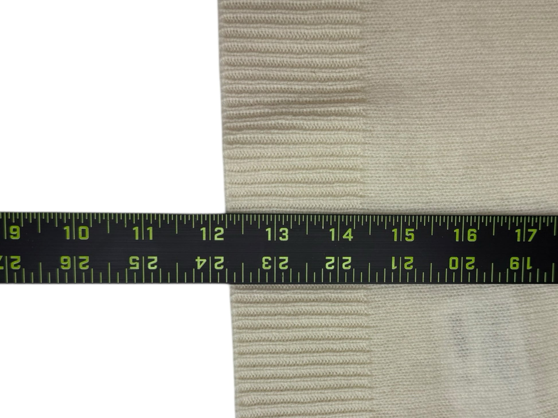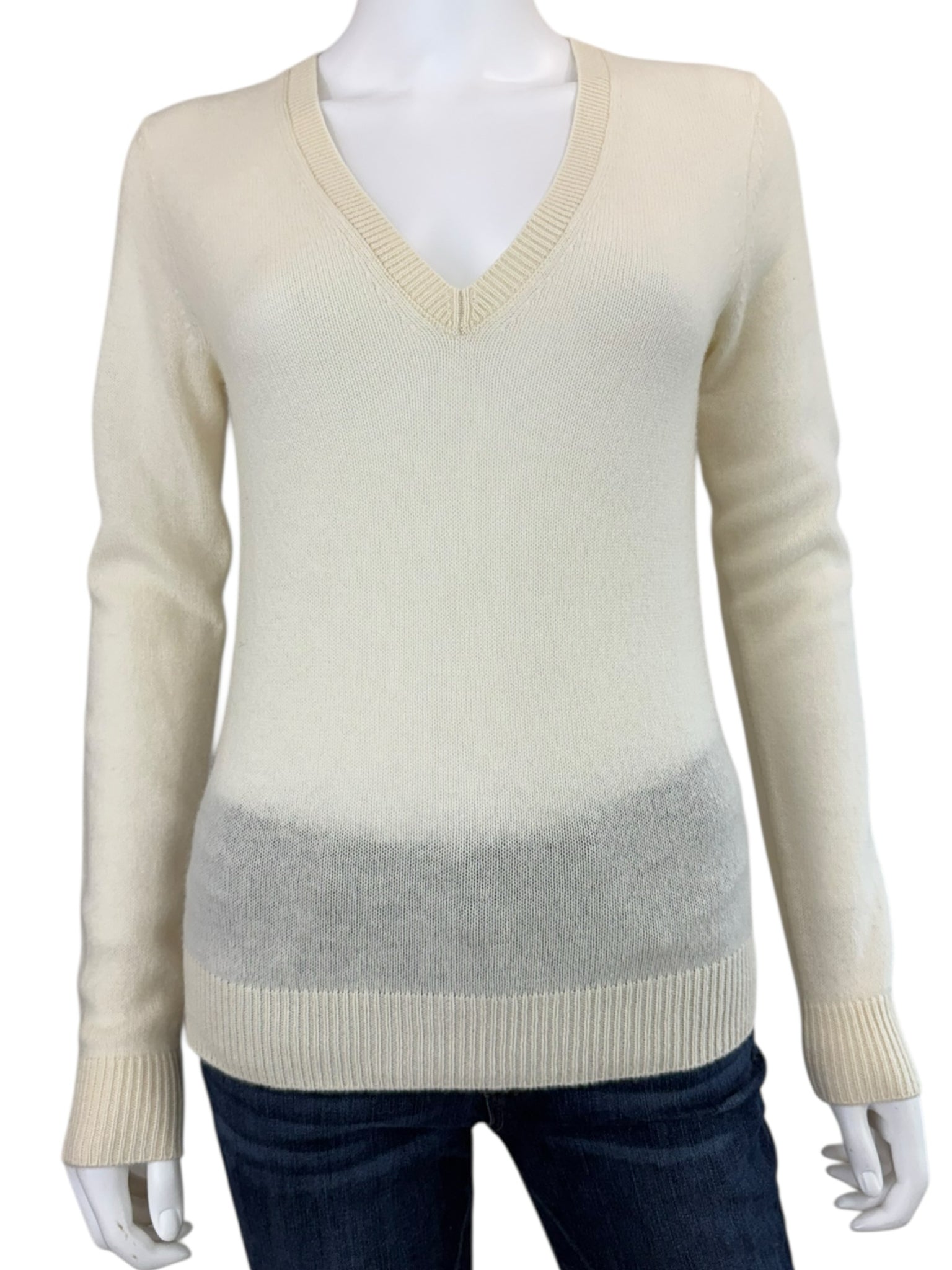100% cashmere lightweight ivory sweater with long sleeves and a v-neck neckline.