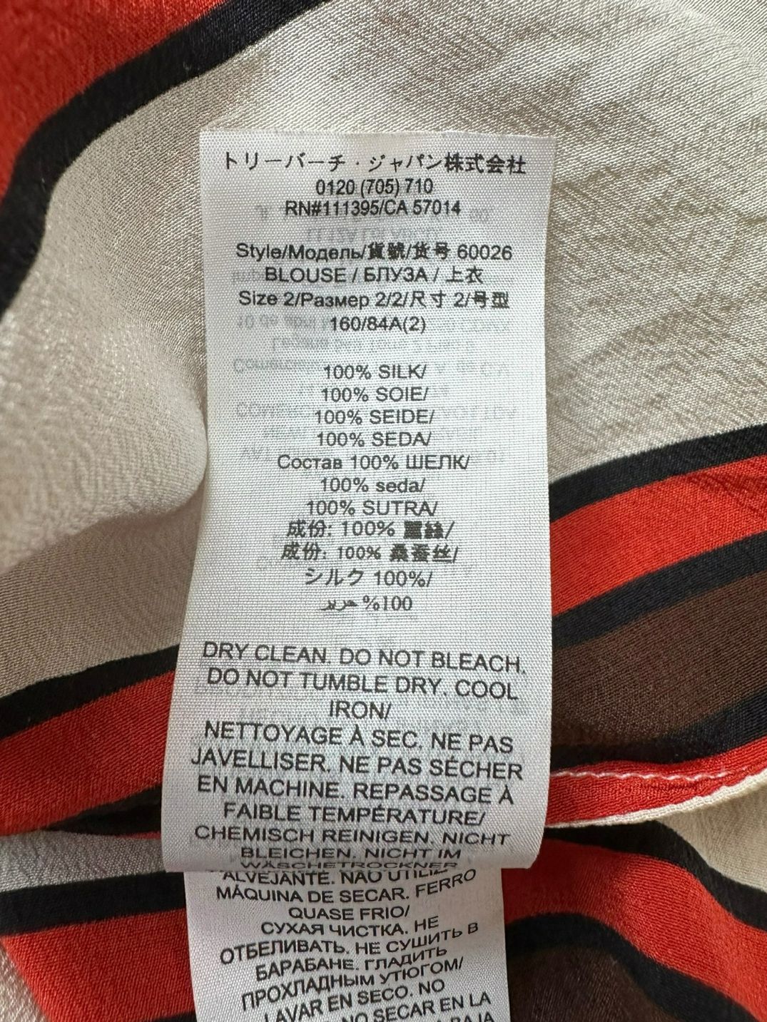 Tory Burch 100% Silk Red Striped Blouse Size 2