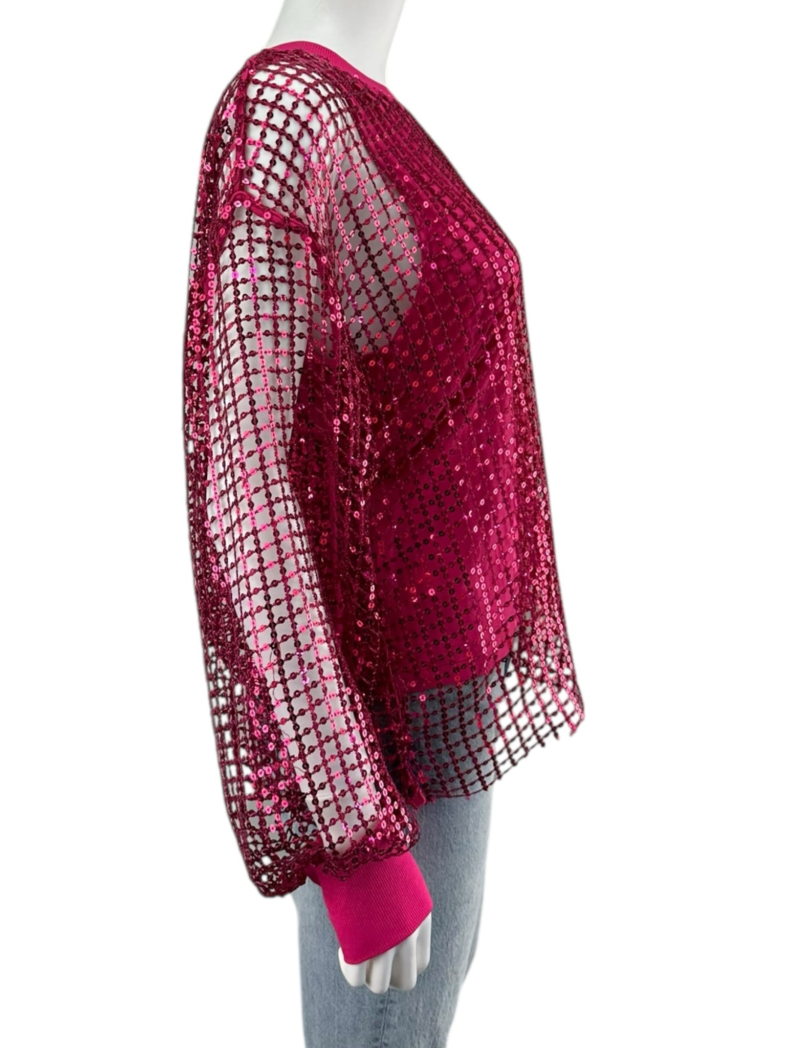 New with tags! Hot pink tank top with a hot pink long-sleeve sequin outer-layer.