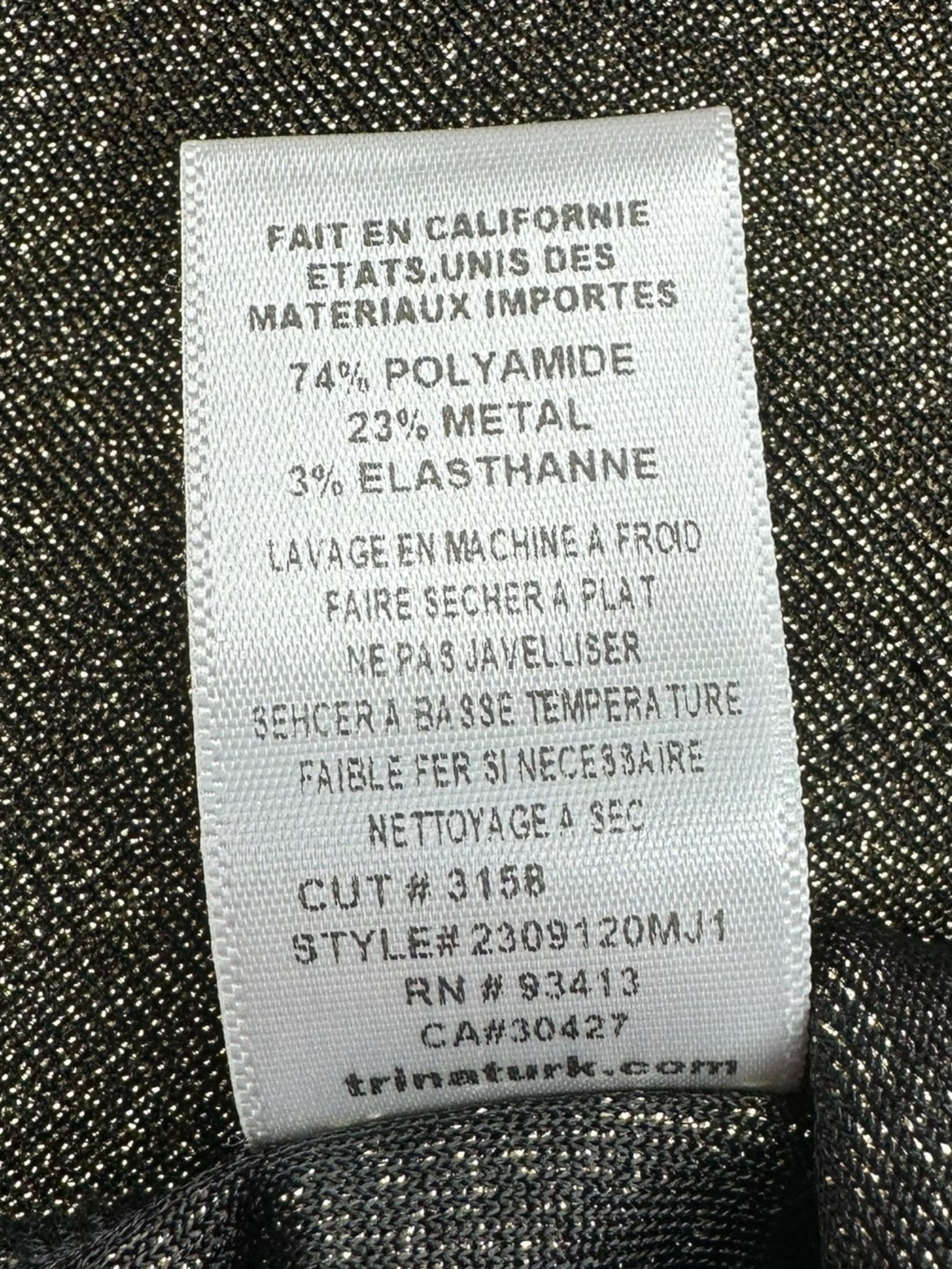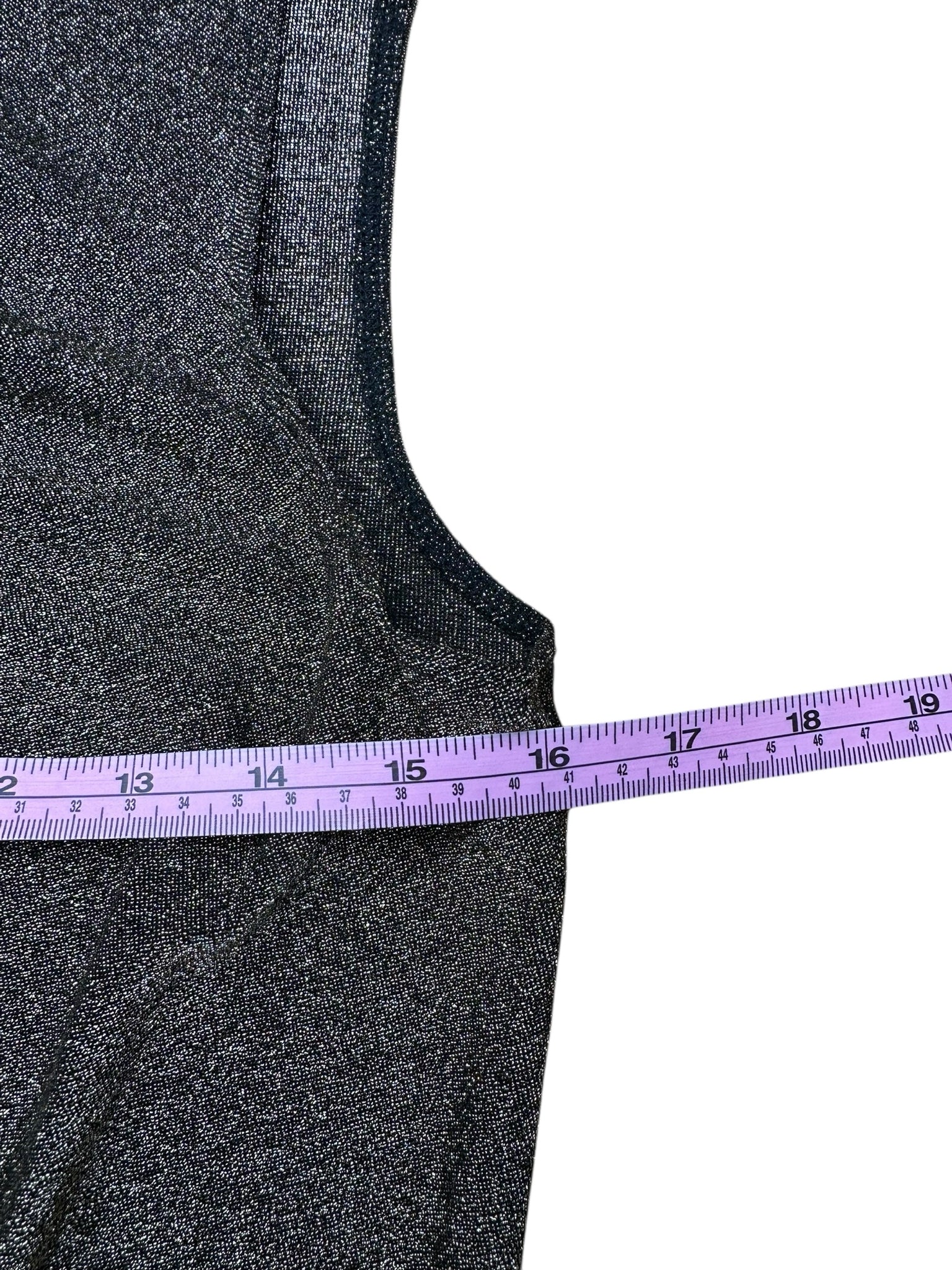 Gold shimmer tank top with black undertones and a tying knot at the neckline.