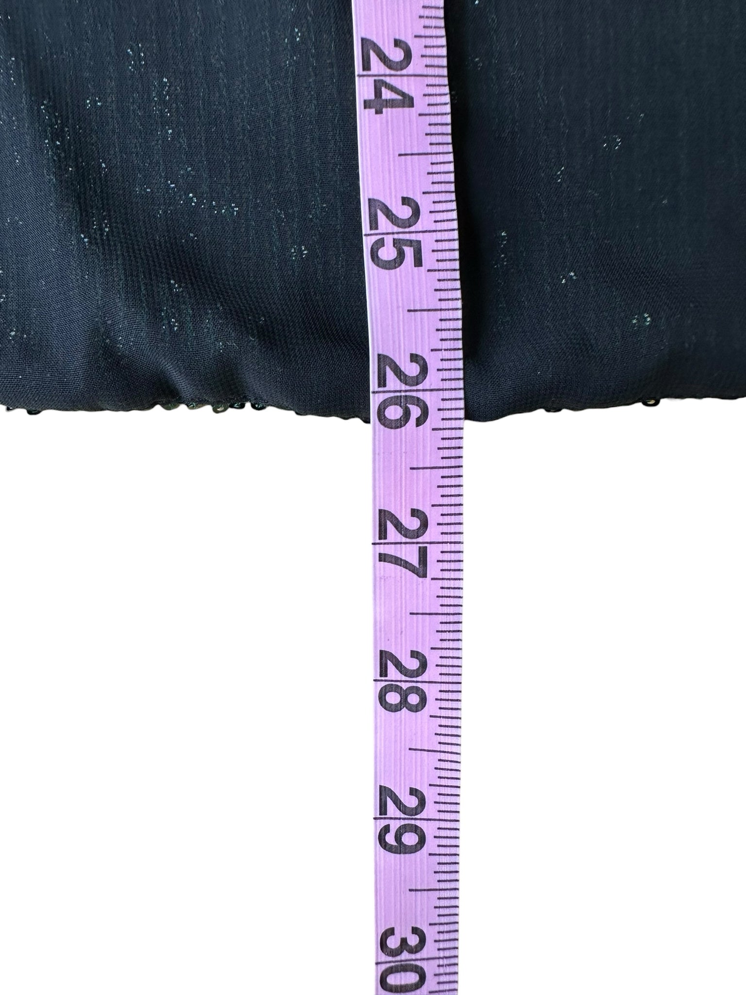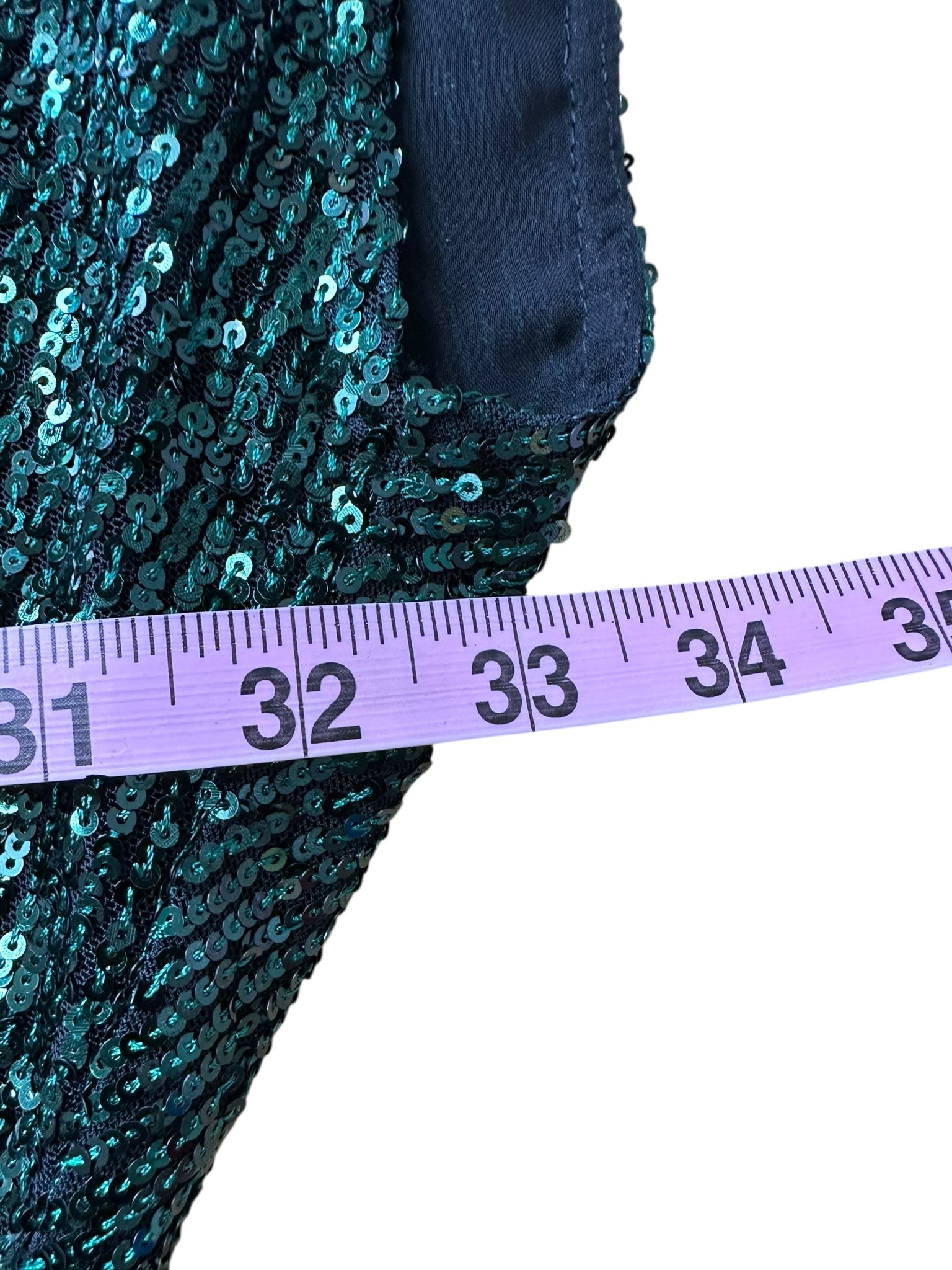 Dark green full sequin v-neck criss cross front bat wing short sleeve cropped blouse.