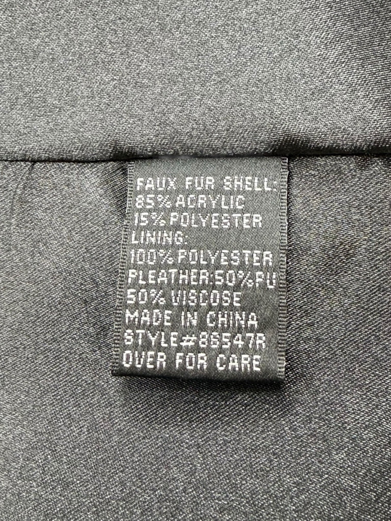 Burgundy, black and white vegan fur vest with front pockets with vegan leather trim and a zipper front closure.