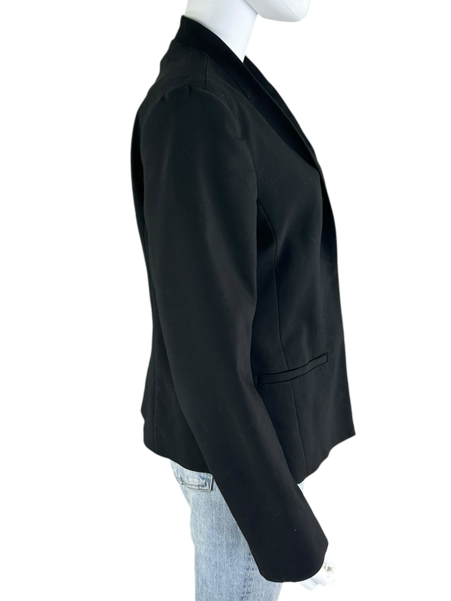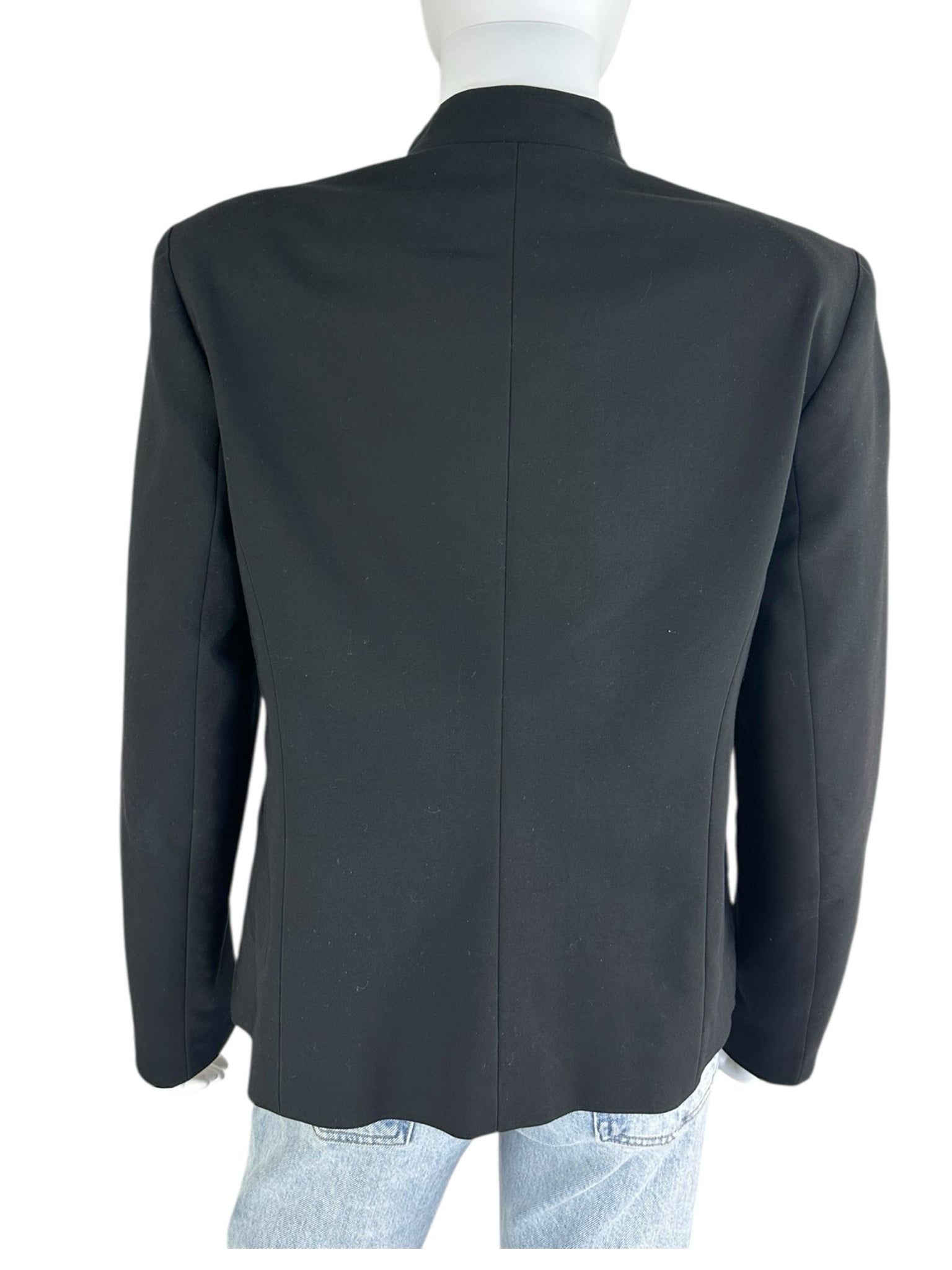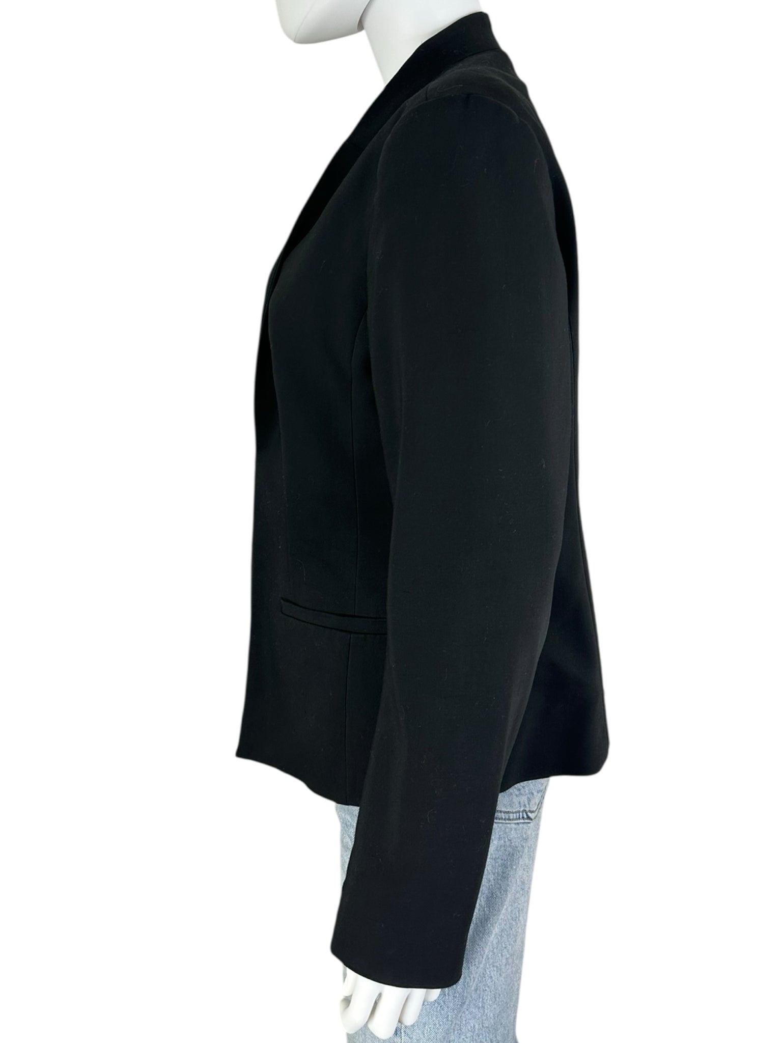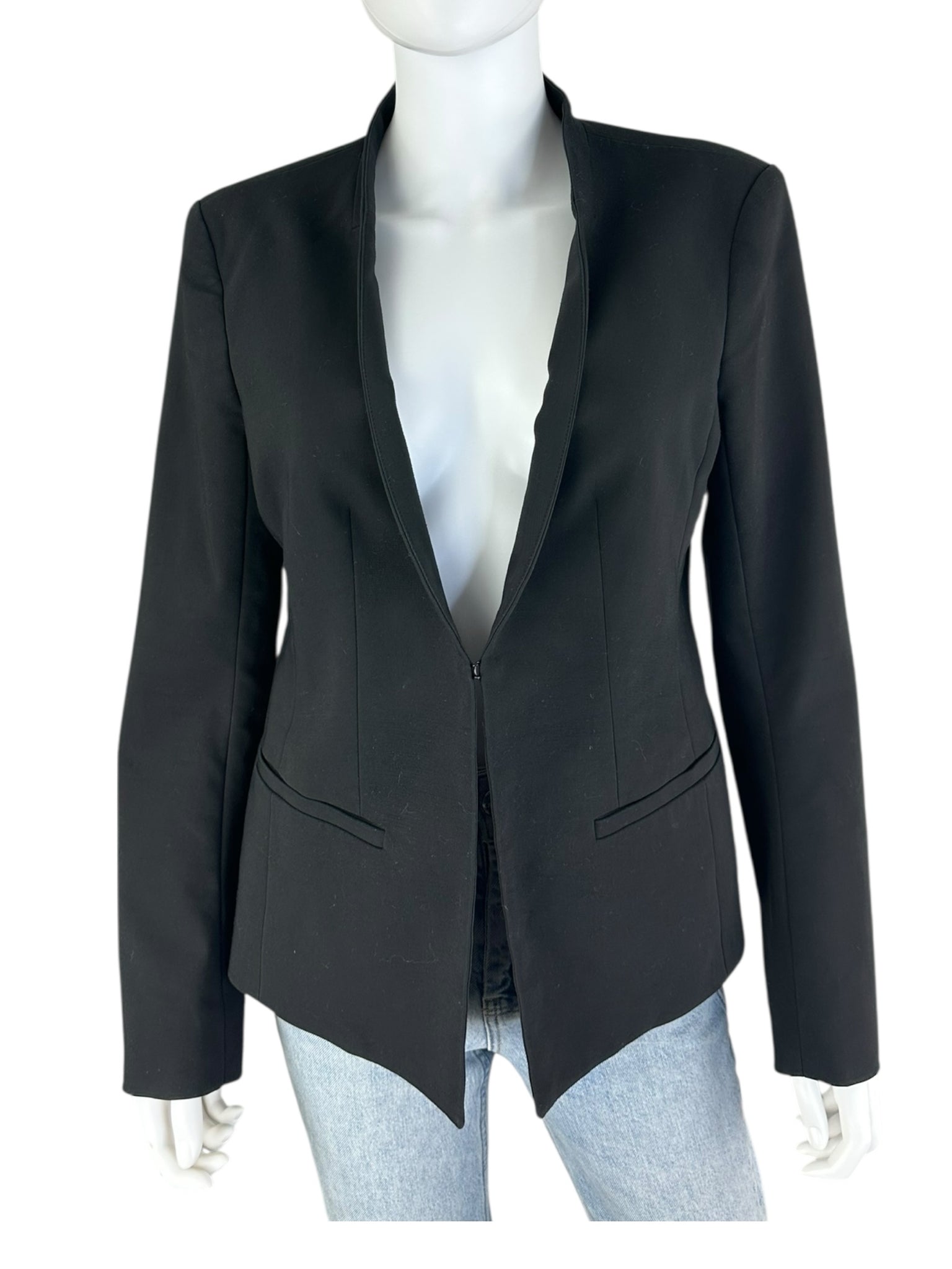 black long sleeve faux side pockets front clasp clip.