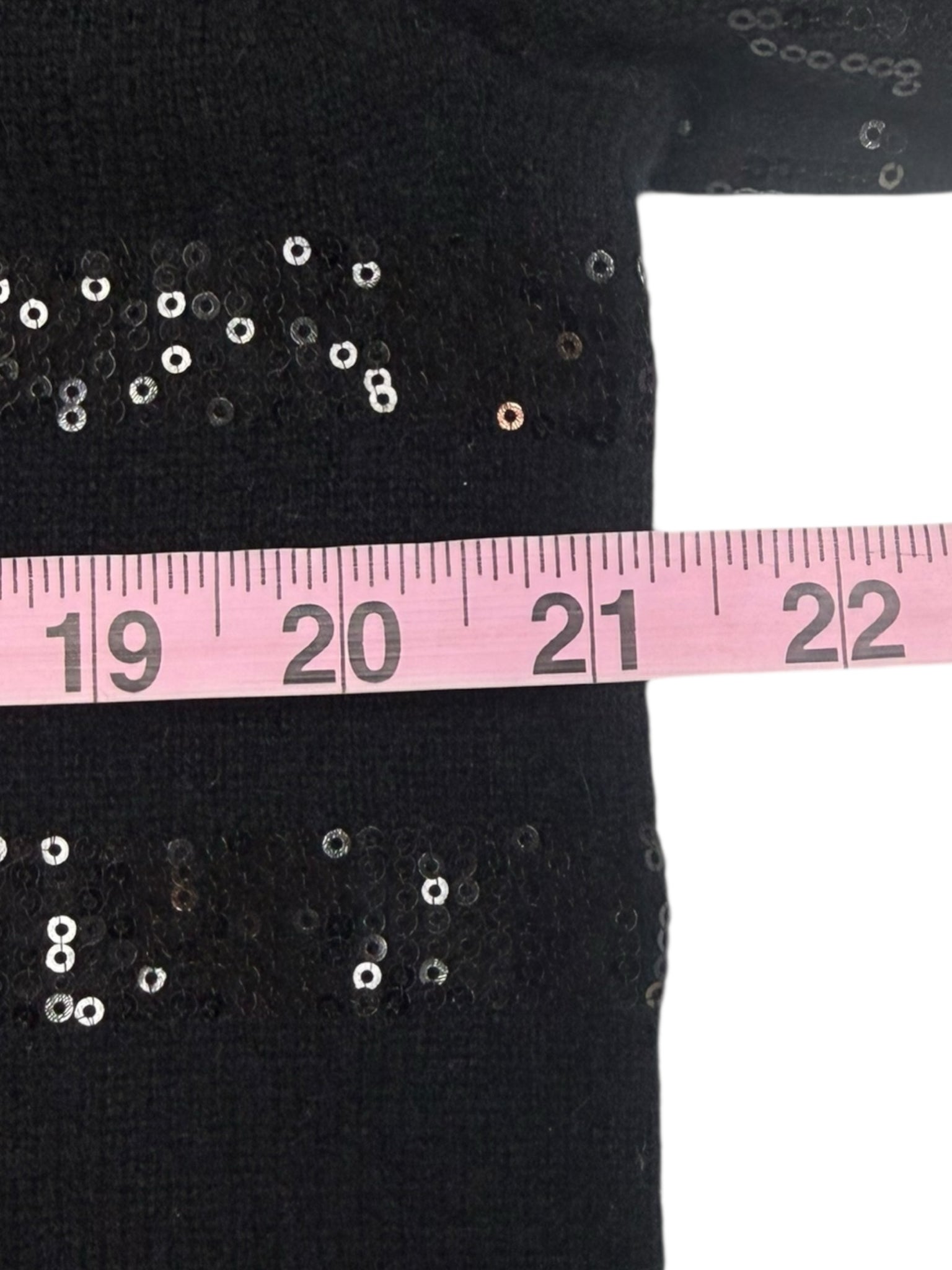 WHITE + WARREN Black 100% Cashmere Sequin Stripe Sweater Size L