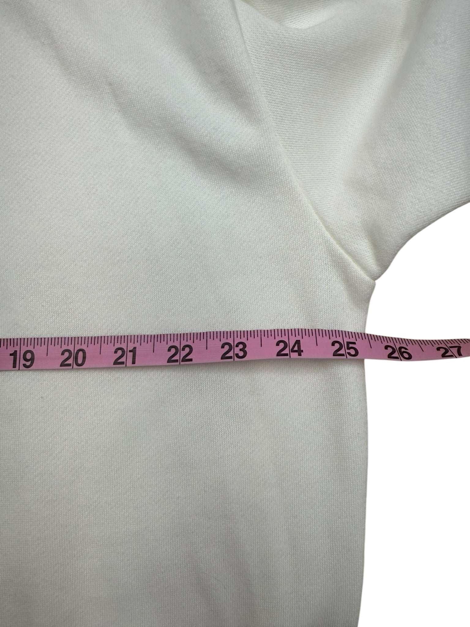 New from local boutique! Super comfy oversized white sweatshirt with long sleeves and a colorful boucle CHEERS design on front.