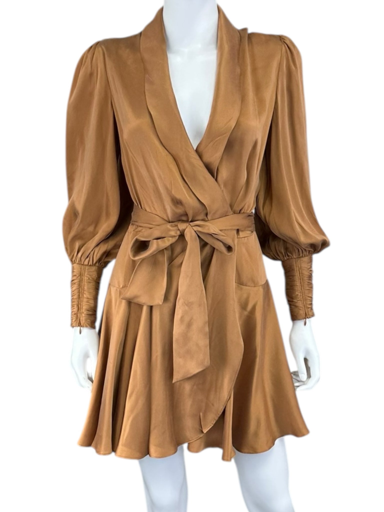ZIMMERMANN Natural 100% Silk Mini Wrap Dress Size 0